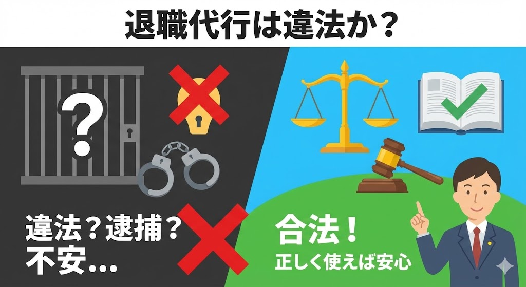 【結論】退職代行は違法じゃない!でも「非弁行為」の業者は危険?逮捕リスクや正しい選び方を解説
