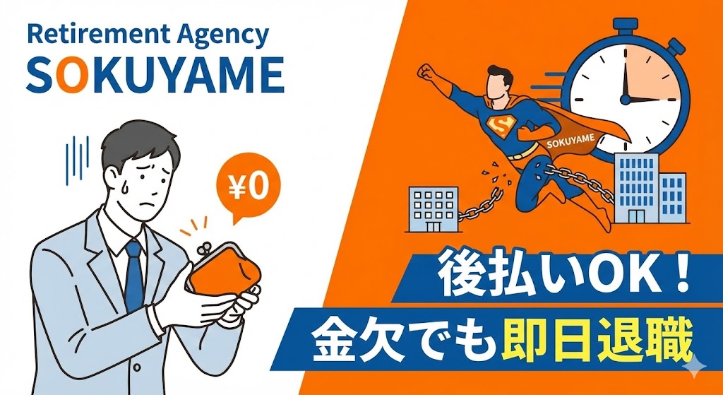 【後払いOK】退職代行「即ヤメ」の評判は怪しい?金欠でも即日辞められる救世主だった